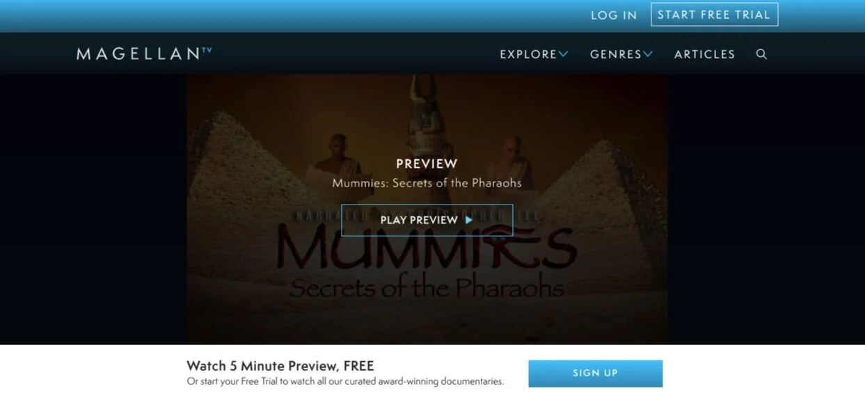 In April of 2019 MagellanTV launched a new browsing mode to allow prospective subscribers to view content before signing up for a trial period. MagellanTV implemented a free 5 minute preview option to encourage users to explore their documentaries and develop an interest in specific videos. Despite this, users were not engaging with documentaries and converting to subscribed members of the streaming service.